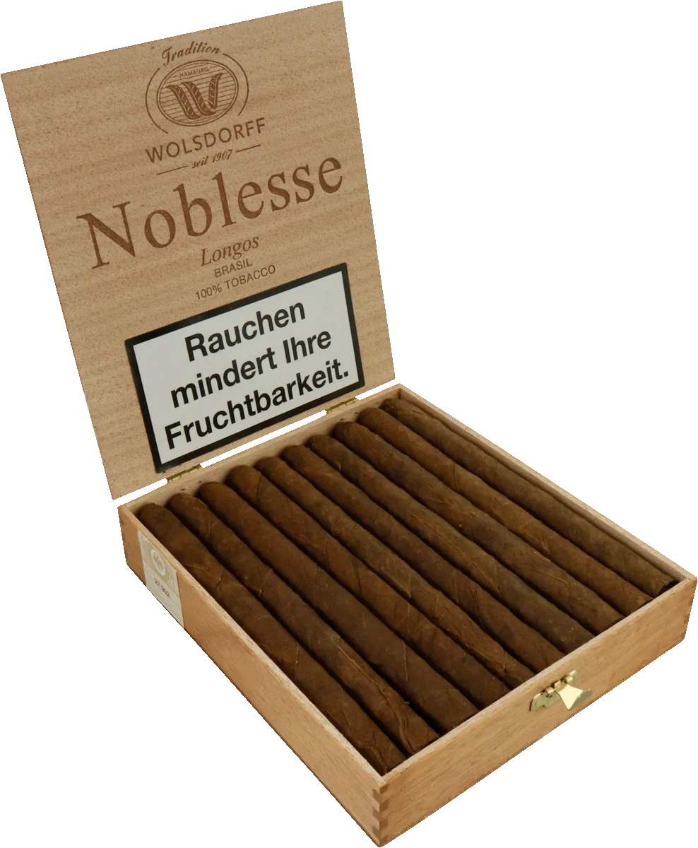 Mit der Auswahl des in Deutschland hergestellten Noblesse Longos Brasil Zigarillos, der ausschließlich aus 100% reinem Tabak besteht, haben Sie eine gute Wahl getroffen. Gefertigt in Deutschland und exklusiv für WOLSDORFF Tobacco hergestellt. In diesem exquisiten Produkt verschmelzen erlesene Tabake aus Java zu einem einzigartigen harmonischen Rendezvous von höchster Qualität. Die Herstellung erfolgt mit äußerster Sorgfalt, wobei ausschließlich erstklassige Tabaksorten aus dieser speziellen Region verwendet werden. Diese präzise Fertigungsweise und die Auswahl hochwertiger Tabaksorten machen ihn zu einem anspruchsvollen Begleiter für Kenner und Liebhaber feinster Tabakgenüsse.