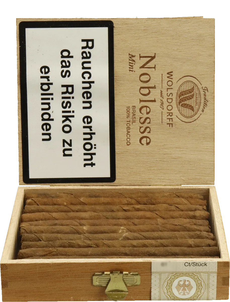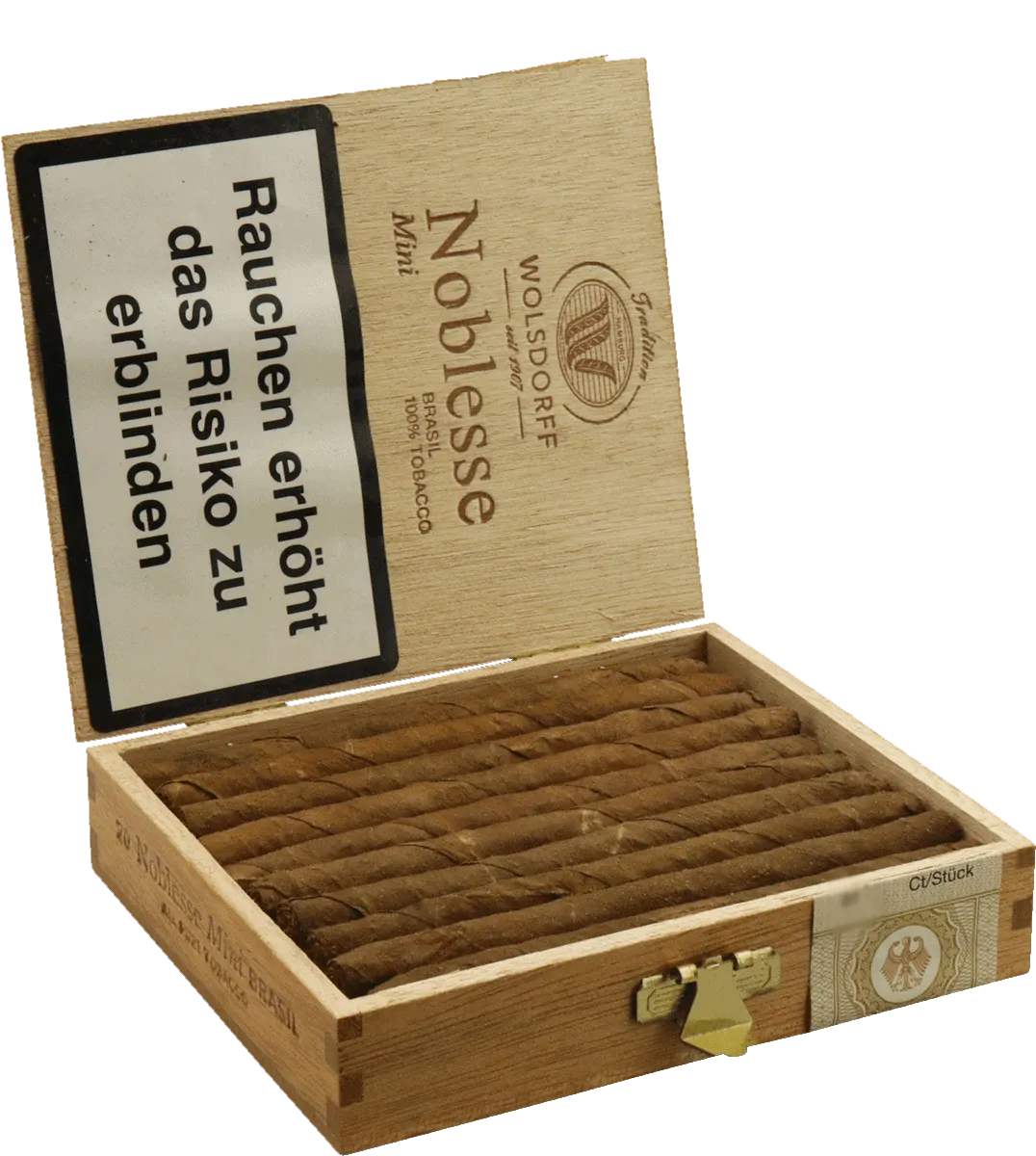 Mit der Auswahl des in Deutschland hergestellten Noblesse Mini Brasil Zigarillos, der ausschließlich aus 100% reinem Tabak besteht, haben Sie eine gute Wahl getroffen. In diesem exquisiten Produkt verschmelzen erlesene Tabake aus Java zu einem einzigartigen harmonischen Rendezvous von höchster Qualität. Die Herstellung erfolgt mit äußerster Sorgfalt, wobei ausschließlich erstklassige Tabaksorten aus dieser speziellen Region verwendet werden. Diese präzise Fertigungsweise und die Auswahl hochwertiger Tabaksorten machen ihn zu einem anspruchsvollen Begleiter für Kenner und Liebhaber feinster Tabakgenüsse.